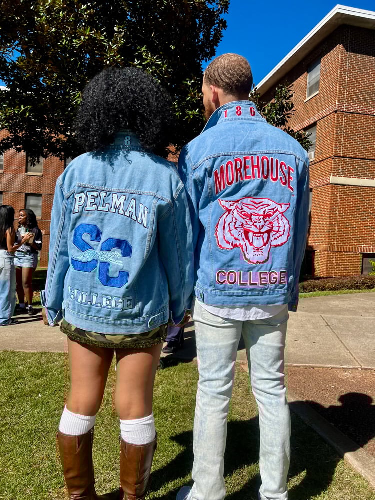The Homecoming Denim Jacket, a Chicer Collegiate favorite, is more than just a name—it’s a symbol of timeless Spelman pride and refined style. Designed to complement every season, this versatile unisex jacket merges sophistication with tradition through premium detailing and craftsmanship.