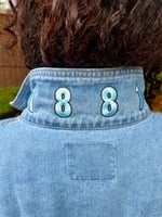 Collar Accent: 1881, Spelman’s founding year, embroidered in light blue and outlined in black.