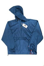 %100 navy blue polyester hooded windbreaker with Heritage Crest for Howard University on the back center, 10 inches wide. Lightweight and durable. Instant classic. Perfect over a t-shirt or sweater.