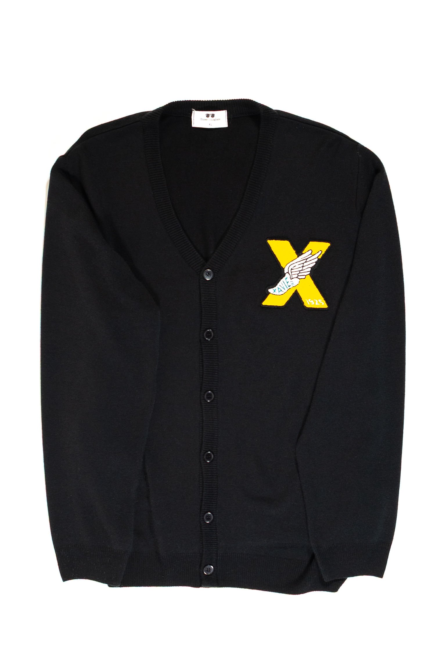 The logo includes a gold X overlayed with an image of Mercury's winged foot. The college's name is embroidered on the image. The institution's founding year, 1925, is embroidered on the bottom left corner.
